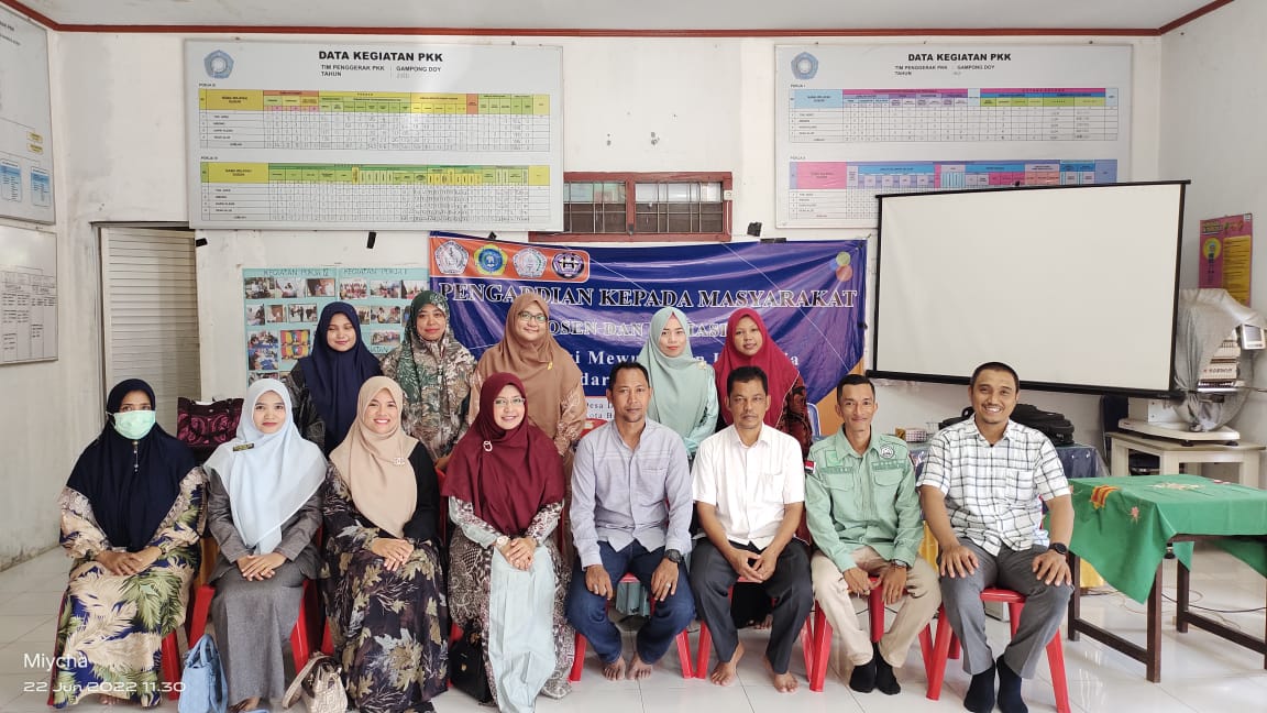 Banda Aceh – Rabu 22 Juni 2022, Kegiatan Pengabdian Masyarakat (Pengmas) ini dilaksanakan di Gedung PKK Desa Doy Kecamatan Ulee Kareng Kota Banda Aceh. Kegiatan ini dilaksanakan oleh perguruan tinggi swasta Akademi Farmasi YPPM Mandiri Banda Aceh bekerjasama dengan dosen Sekolah Tinggi Ilmu Manajemen (STIM) Banda Aceh dan turut juga hadir dosen dari Universitas Iskandar Muda serta Akademi Farmasi Makanan (AKAFARMA) Banda Aceh sebagai salah satu bentuk dalam menjalankan tri dharma perguruan tinggi, yang nantinya diharapkan membantu kemandirian gampong, sekaligus bisa menjadi jurnal ilmiah Dosen dan Mahasiswa.