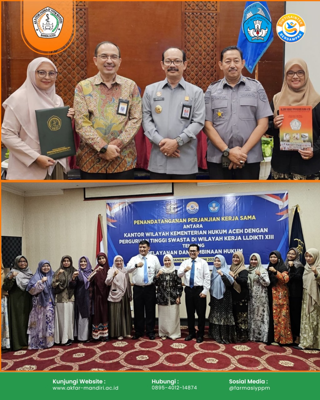 Banda Aceh – Ketua Bidang Kerjasama Akademi Farmasi YPPM Mandiri Banda Aceh mengikuti kegiatan penandatanganan MoA dengan Kementrian Hukum Aceh dengan Tema “Pelayanan dan Pembinaan Hukum” pada Selasa (17/6/2025).
